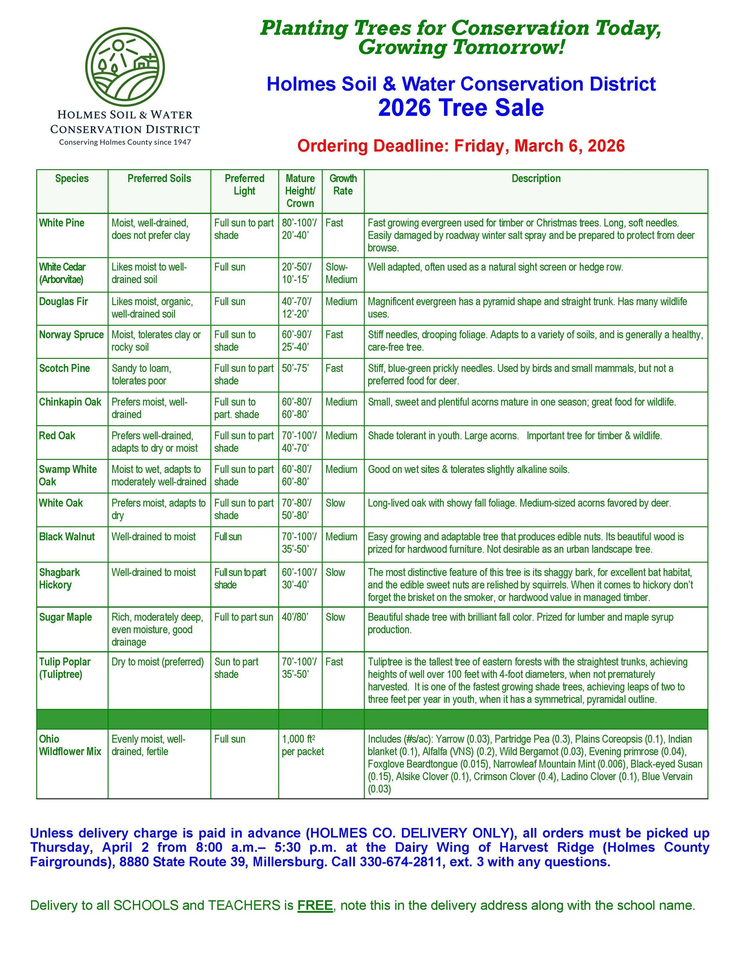 Holmes Soil & Water Conservation District 2026 Tree Sale